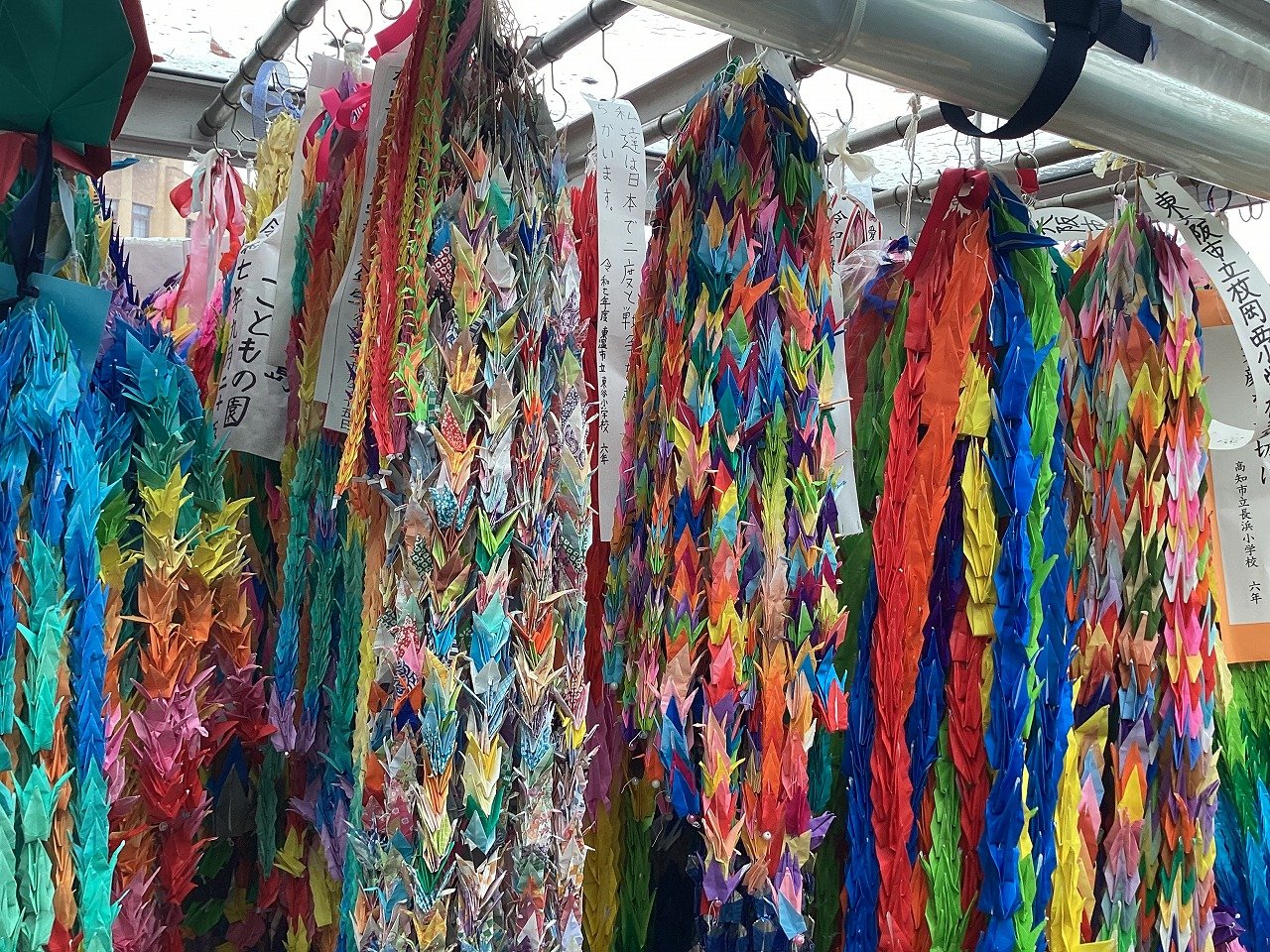 9月25・26日に6年生が広島へ修学旅行に行きます。その時に平和を願って作った折り鶴を持っていきます。