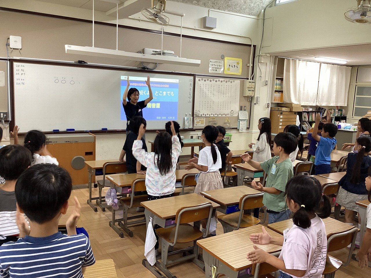 国語で学習した「サラダでげんき」から、りっちゃんの作ったサラダを食べたお母さんが元気になった理由と1学期に学習した栄養三色をつなげることで、より食に対する知識・関心を深めることをめあてに、給食の先生が授業をしてくれました。