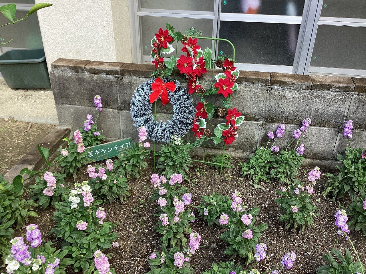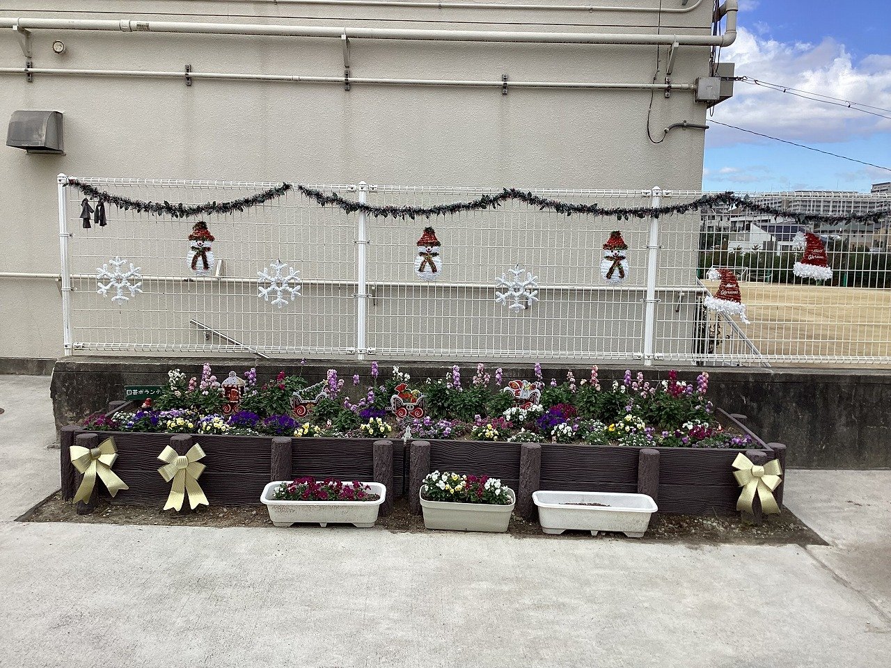 園芸ボランティアのみなさんが、校内の花壇をクリスマスバージョンに模様替えしてくれました。
