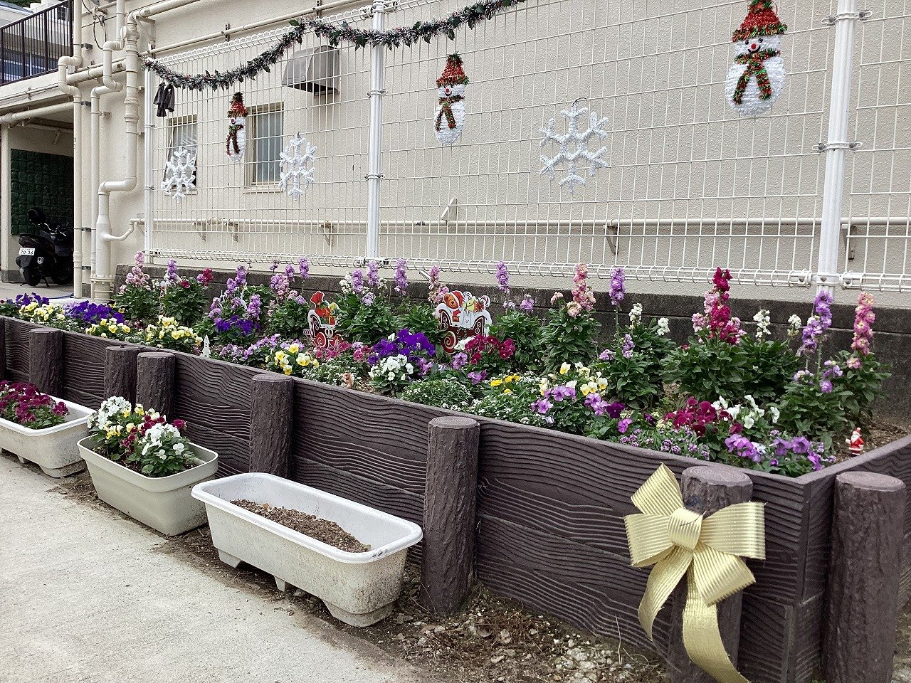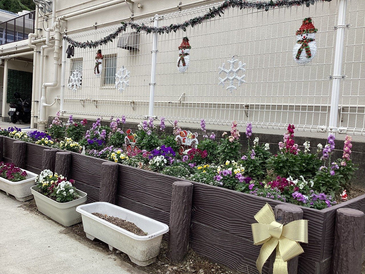 子どもたちも毎日クリスマス花壇を見て、癒されていると思います。