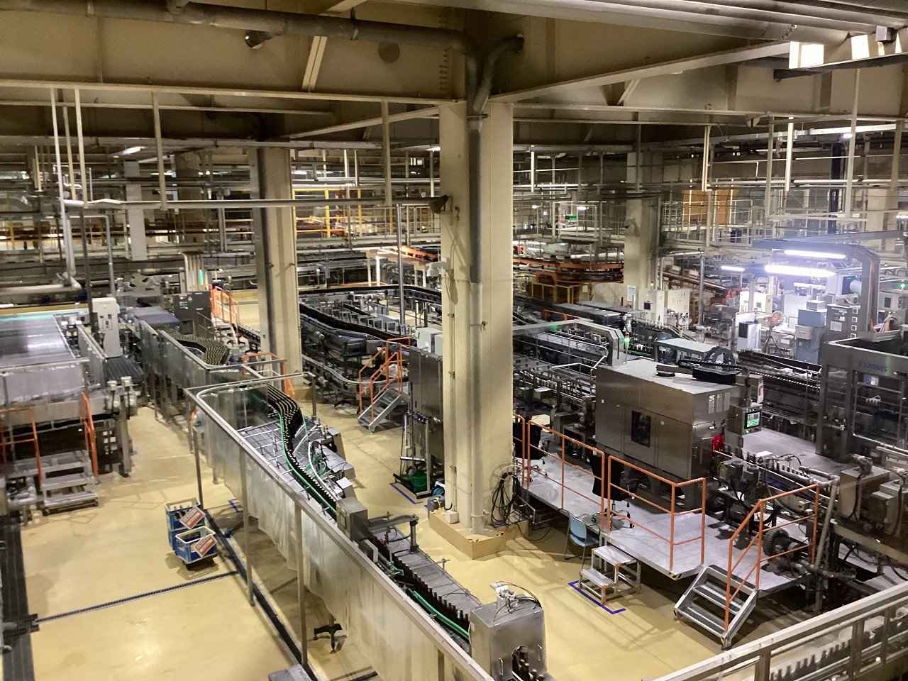 瓶ビールは10本、缶(350ml)は25缶1秒間にビールが注入されるそうです。また、工場の広さは甲子園球場約4個分とのことでした。