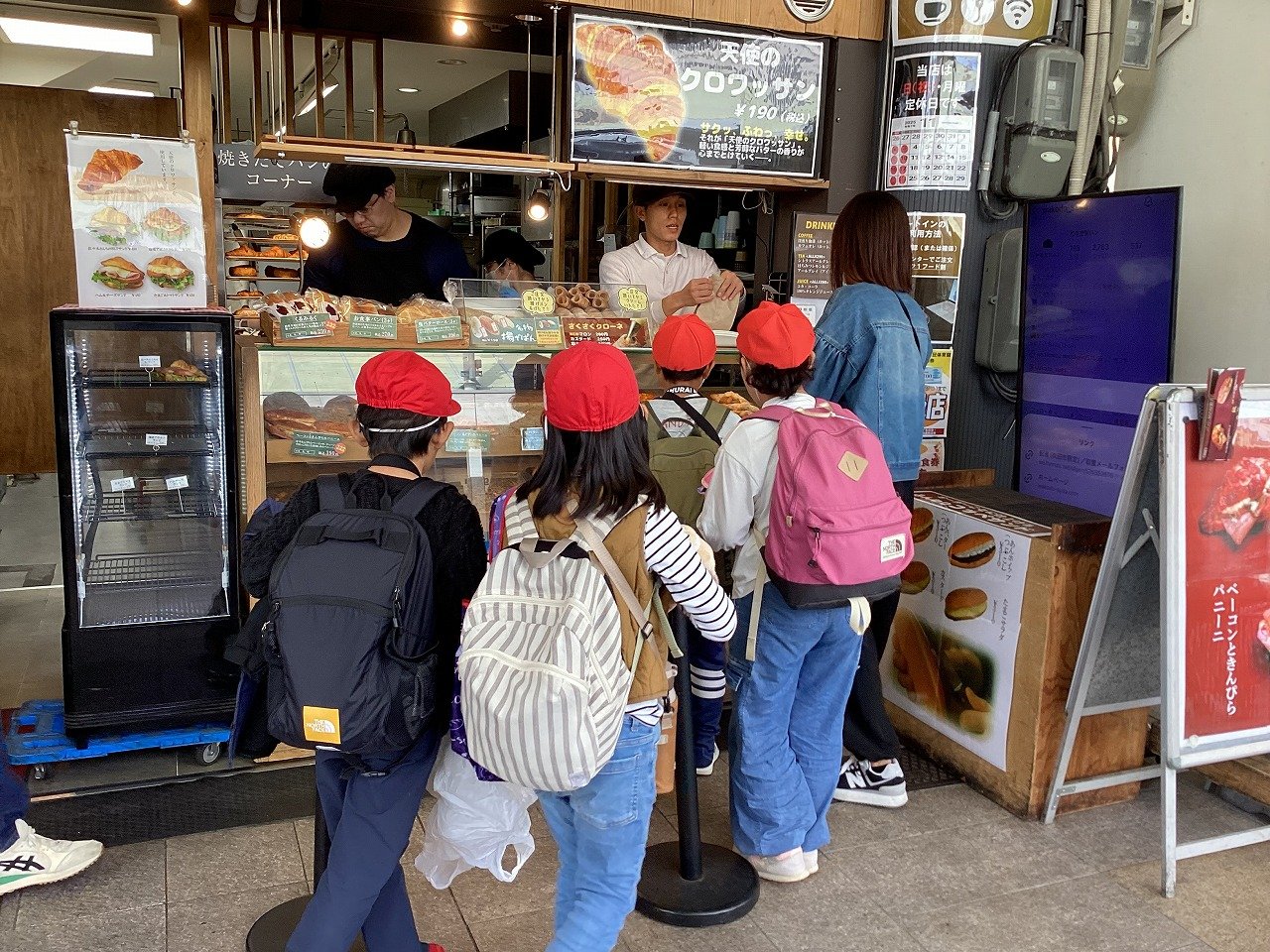 工場見学が終わると、片山公園に行き、お楽しみのお弁当タイムをとりました。その後、旭通り商店街に移動し、グループでのお買い物タイム開始!