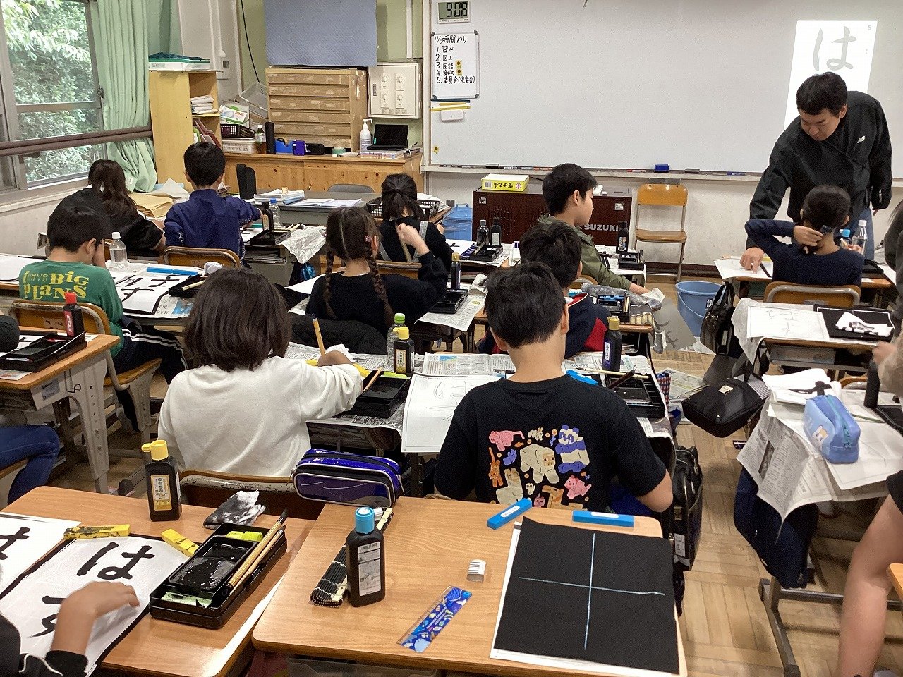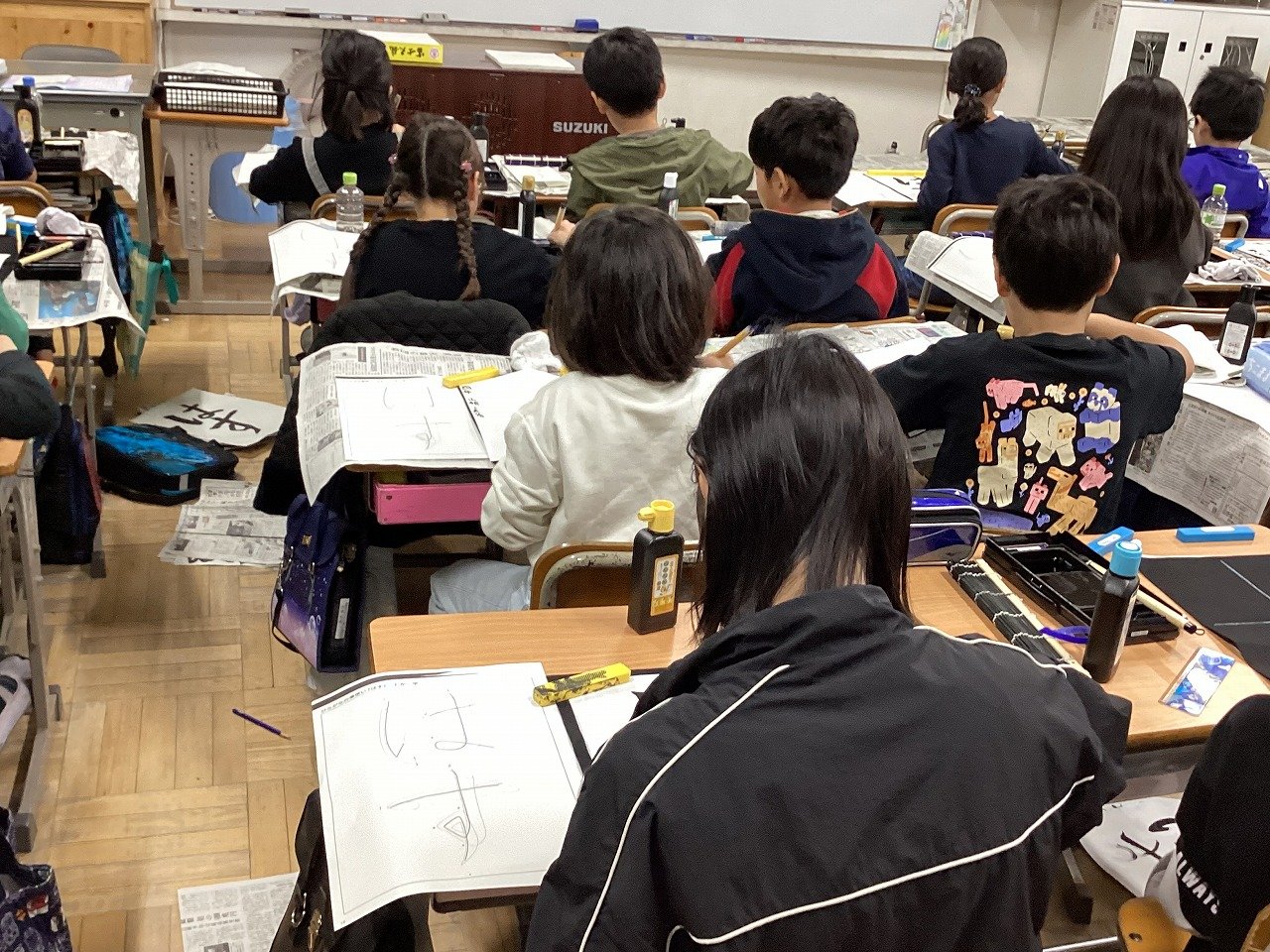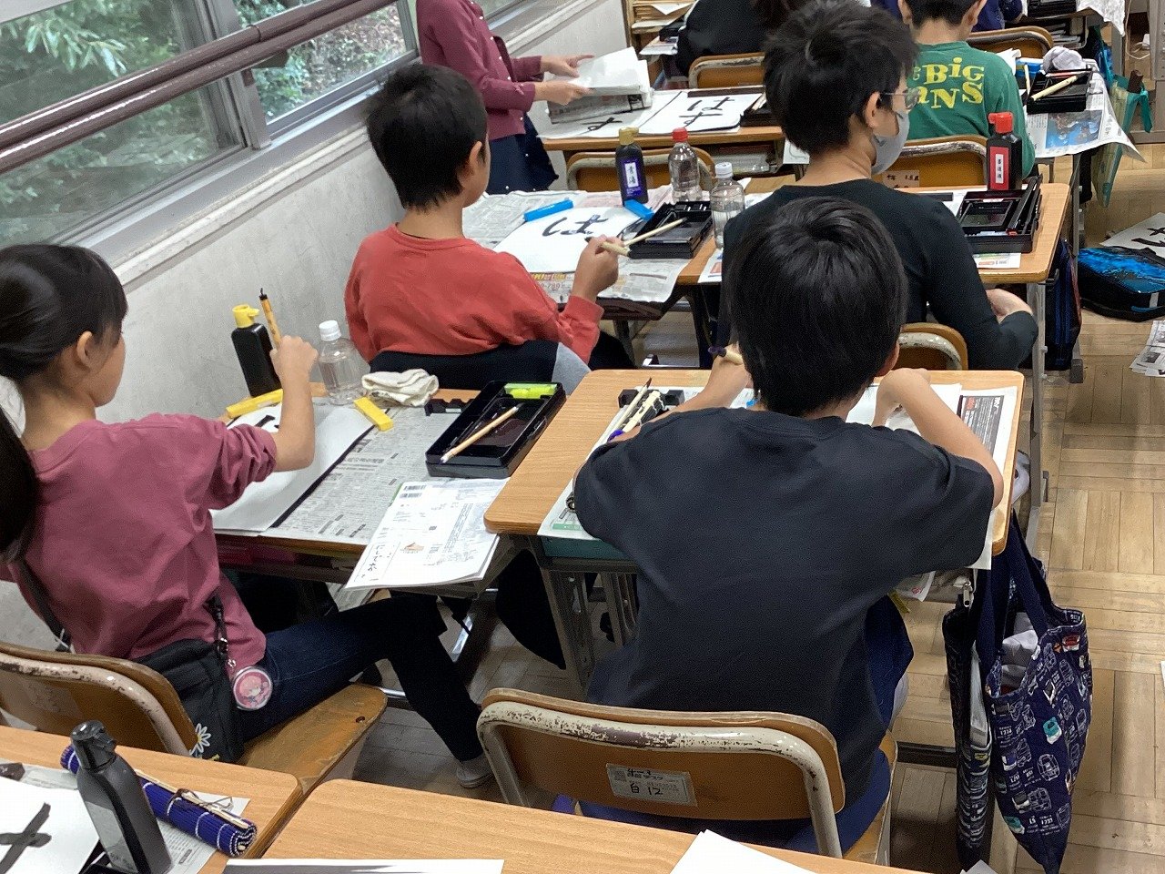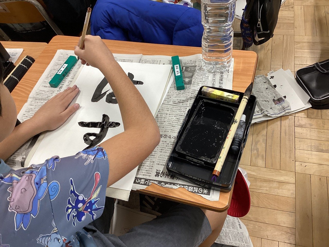 そして、精神集中して、いざ清書。ひらがなは、バランスをとったり、筆をくるっとまわして書いたりするところが難しいですが、丁寧に一文字ずつ集中して書いていました。