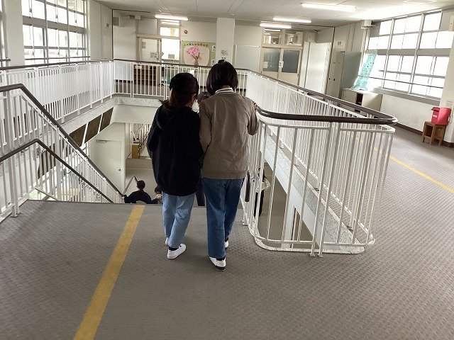 アイマスクをしている人の案内が難しかったです。自分がその体験をしてみたら、すごく暗くて、何も見えなくて、階段を降りるときがとても怖かったです。手すりを持つとすごく安心しました。目が見えない人は、いつもこんな怖い思いをしているのだと知って良かったです。バリアフリーのことをもっと知りたいと思いました。
