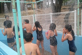 6年生が、いっしょうけんめいに掃除をしてくれて、ピカピカになったプールで
