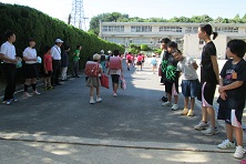 PTAのお母さんたちにもご協力いただき、運動場いっぱいに書かれた道路や交差点を使って