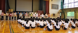 佐竹台地区の老人会の方々を講師に招き、3年生が盆踊りを教えてもらいました。
