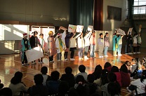 保健委員会が、劇をしてインフルエンザ予防を呼びかけました。