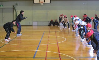 バレーボールの実技指導をしていただきまた。また、ご自身の体験をふまえながら、努力や