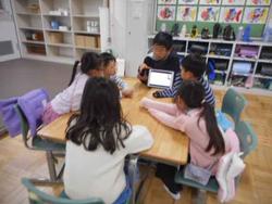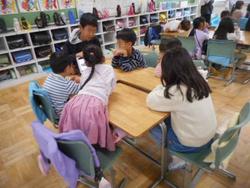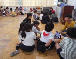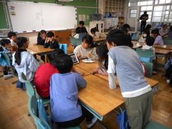 小グループに6年生一人ひとりが報告します。クラスの中でローテーションをしながら、複数のグループに発表しました。