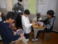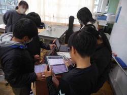 グループごとに分かれて聴いた音や音楽を、音色や高低、速さなどに注目して、タブレットに記入していきました。感じたことを言葉で表現することは難しく、それでも何かしら自分で言葉や言い方を工夫しました。