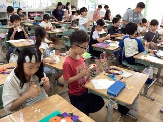 ちは思い思いに色画用紙で様々な飾りを作ってリースを