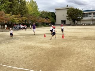 ンでリレーをしました。子どもたちは、上手にハードルを