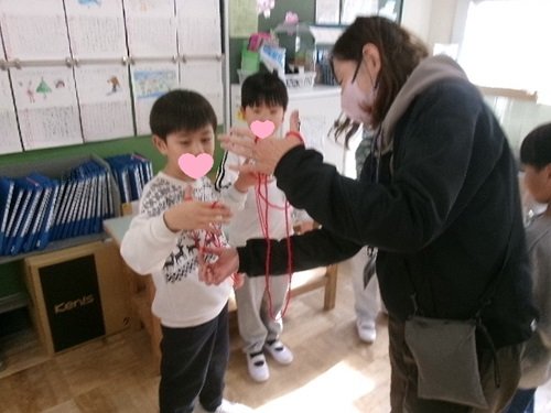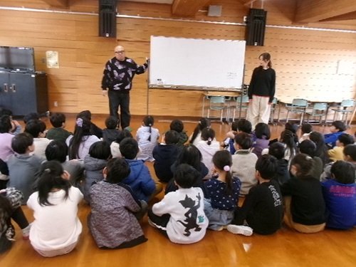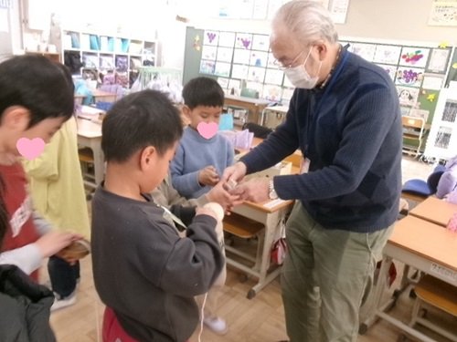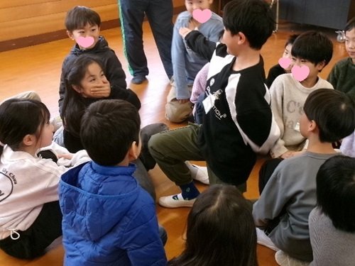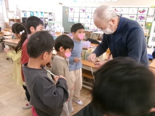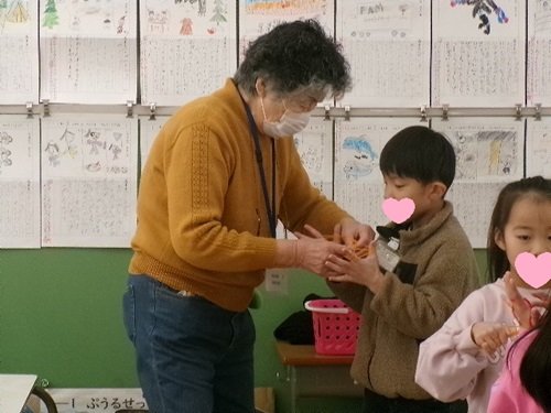 👆1年生の背丈に合わせて、しゃがんでいる姿があります。