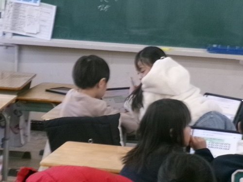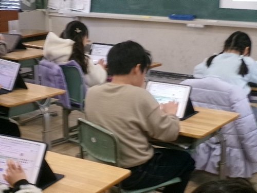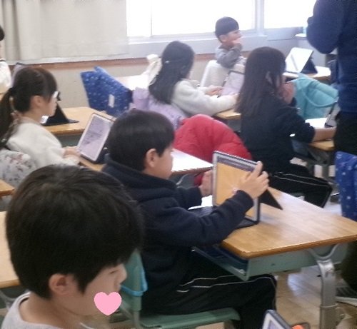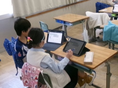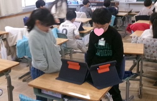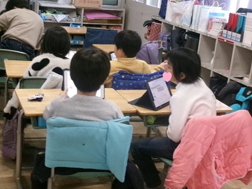 子どもたちが自然とiPadを使っています。