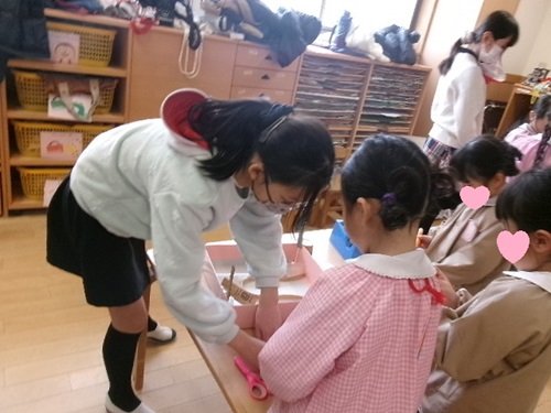 上手に教えてあげて、年長児さんに、やらせてあげています。