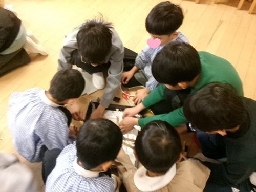 年長児さんと一緒に、コリントゲームをつくります。