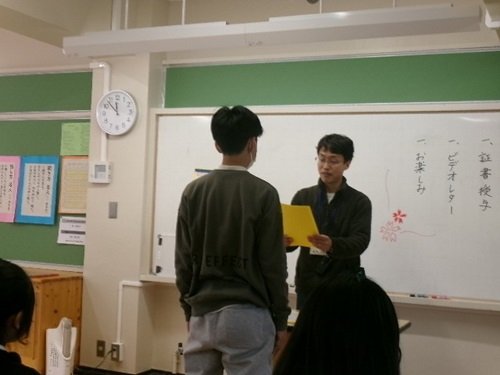 証書授与のあとは、おにぎり学級の在校生からの