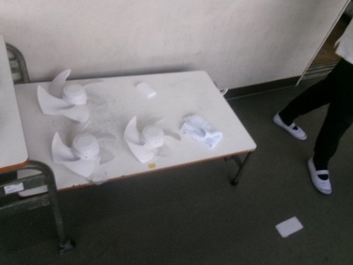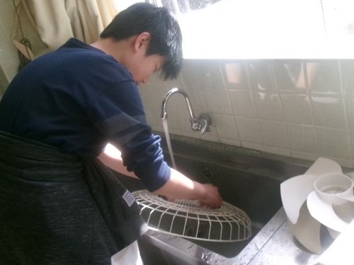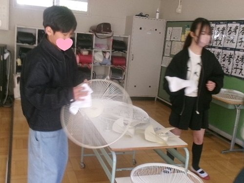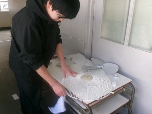 教室の換気扇や天井扇の大掃除、1年間たまったほこりや汚れを