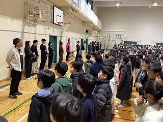 体育館に全校児童が集まりました