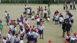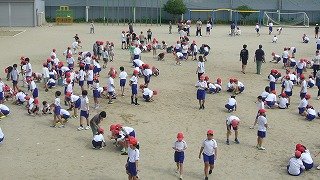 運動会の練習も本格的になっています。まだ、体育館での練習も多いのですが、走競技の練習や団体競技の練習は運動場で行います。どうしても転倒したり手や足を地面についてしまうことがあるのですが、そんな時に大きなけがにつながらないように、お掃除の時間や全校朝礼の後に全校児童で石拾いをしました。砂の運動場に見えますが、時々、石も混じっています。こうやってみんなで石を取り除くと安心ですね。