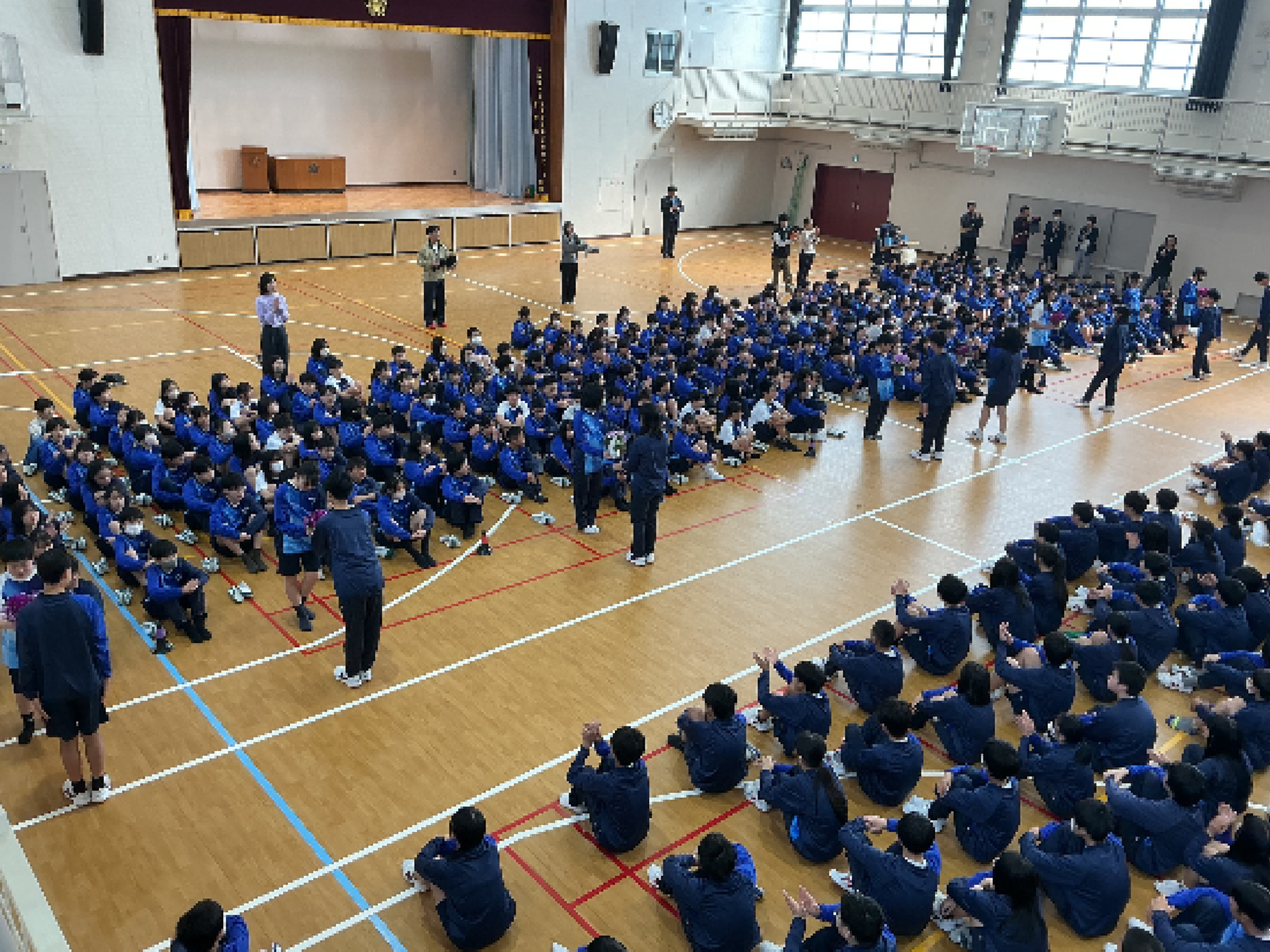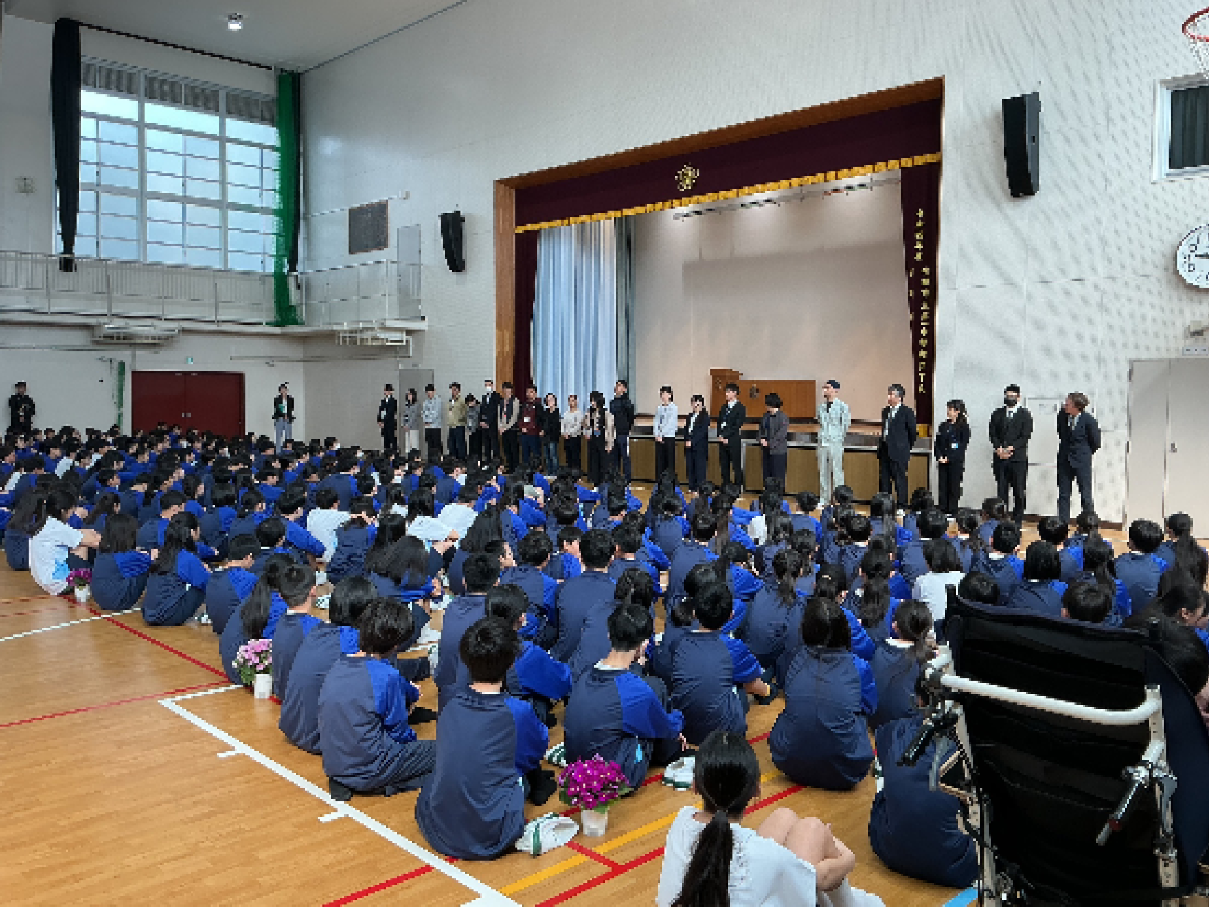 対面式終了後、全員ステージ側に向き直し、全校集会に移行しました。
