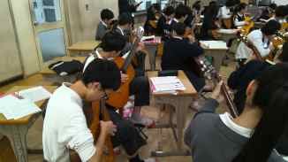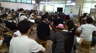 2年生の音楽は、ギターの練習と合唱の練習をしていました。