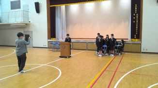 インフルエンザが流行ってきているので、本日は体育館からの配信でした。上手な挨拶、しっかりした方針と感心しました。