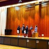 12月24日(水)今日は2学期終業式でした。たくさんの表彰があり驚きました。みんないろいろな場面で頑張っているのだと知ることができて嬉しかったです。また、生徒会からはカードゲームの試行期間と人権標語の発表がありました。