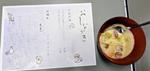 写真は、試食してもらう先生方にメッセージを書いている様子です。