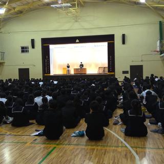 久しぶりの体育館で全校生徒が集まり、校長先生のお話を聞きました。