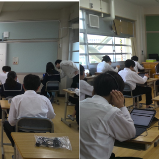 実際に端末でログインをして、ヘッドホンをつけて練習問題を解き、答えていました。