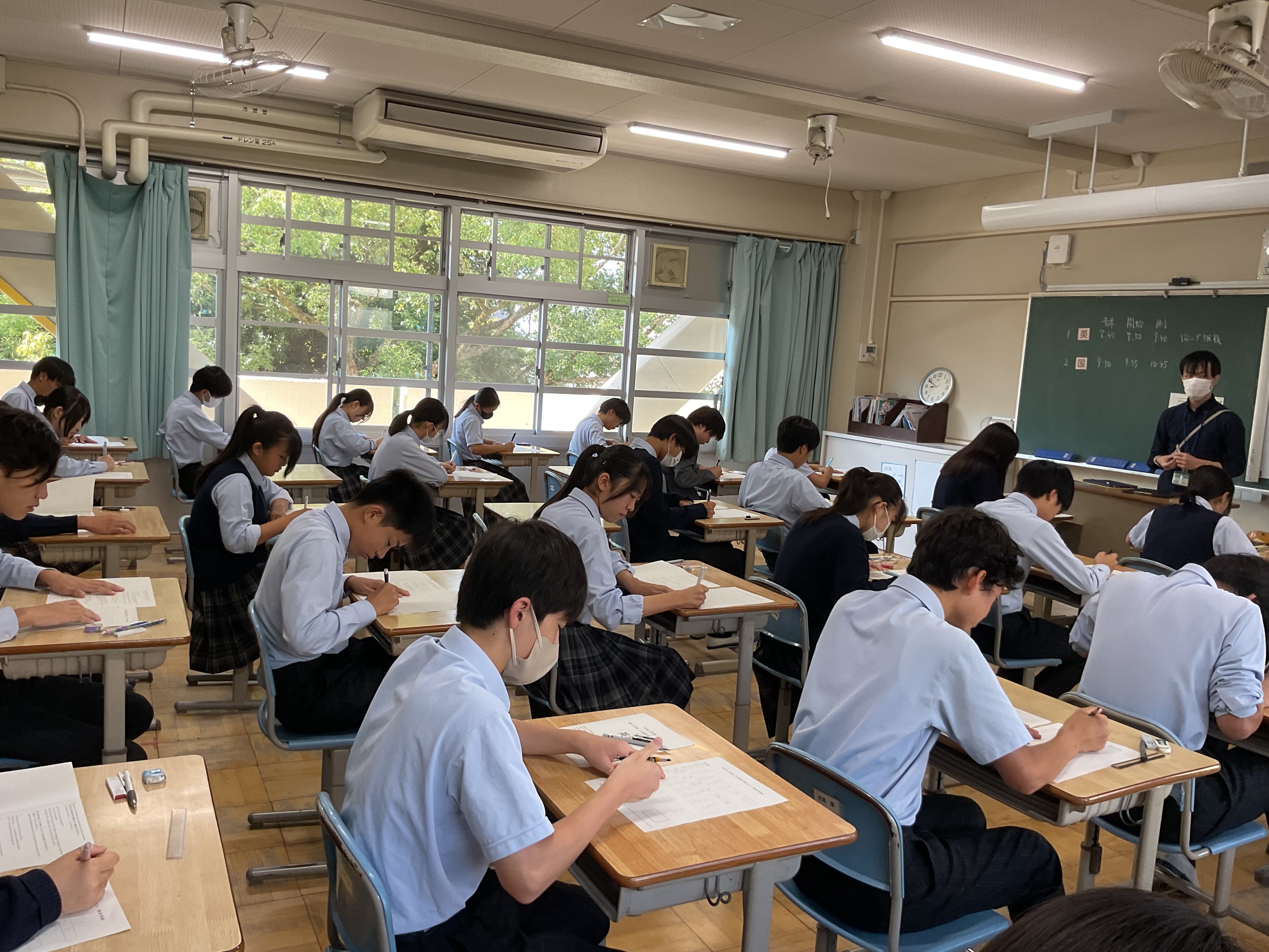 先週末、実施した中間テストの返却です。結果はどうだったでしょうか?テスト問題の解説を聞きながら、確認していました。3年生は今月末には実力テストも控えています。1回ずつ入試に向けて準備していきましょう。
