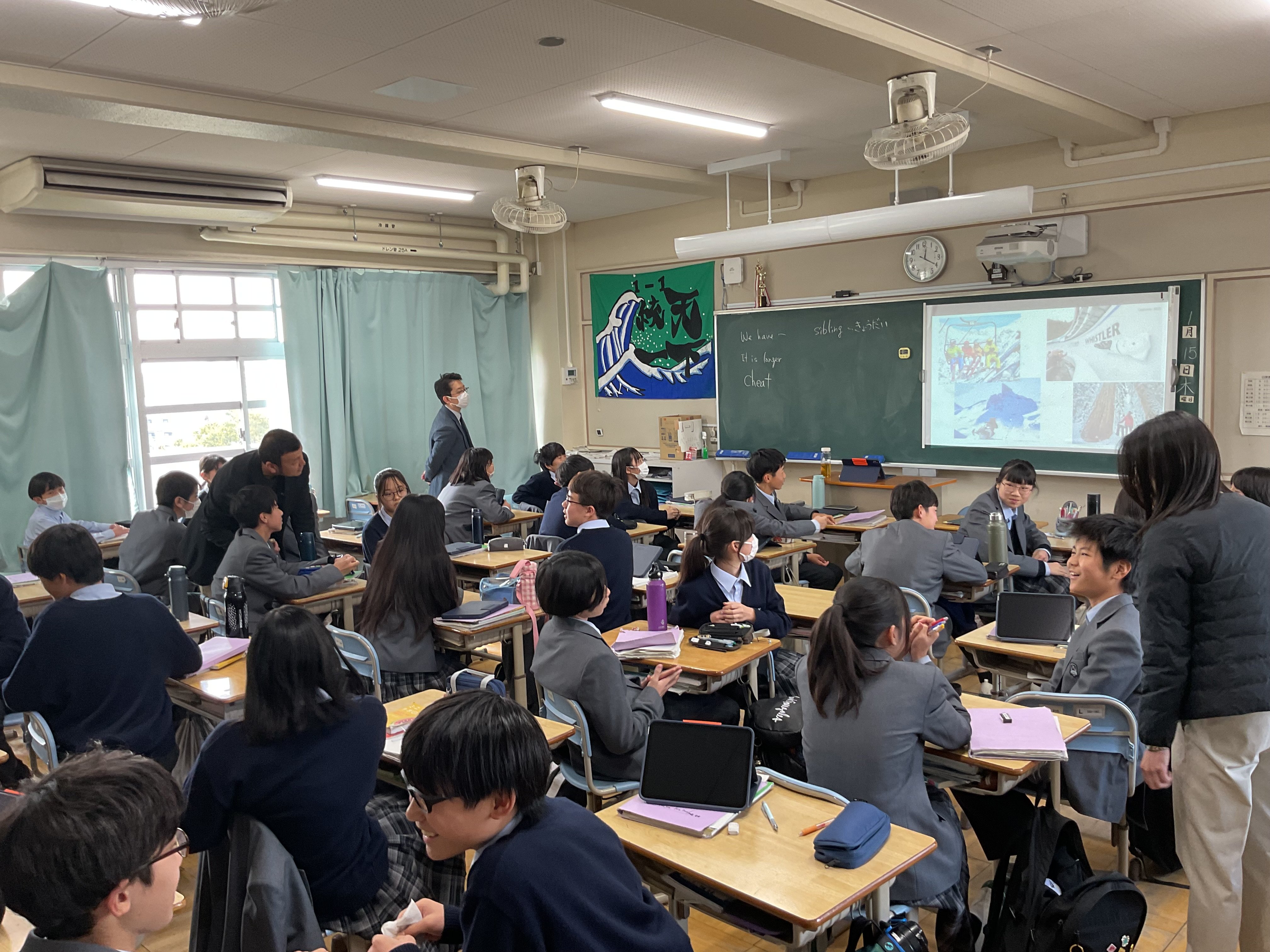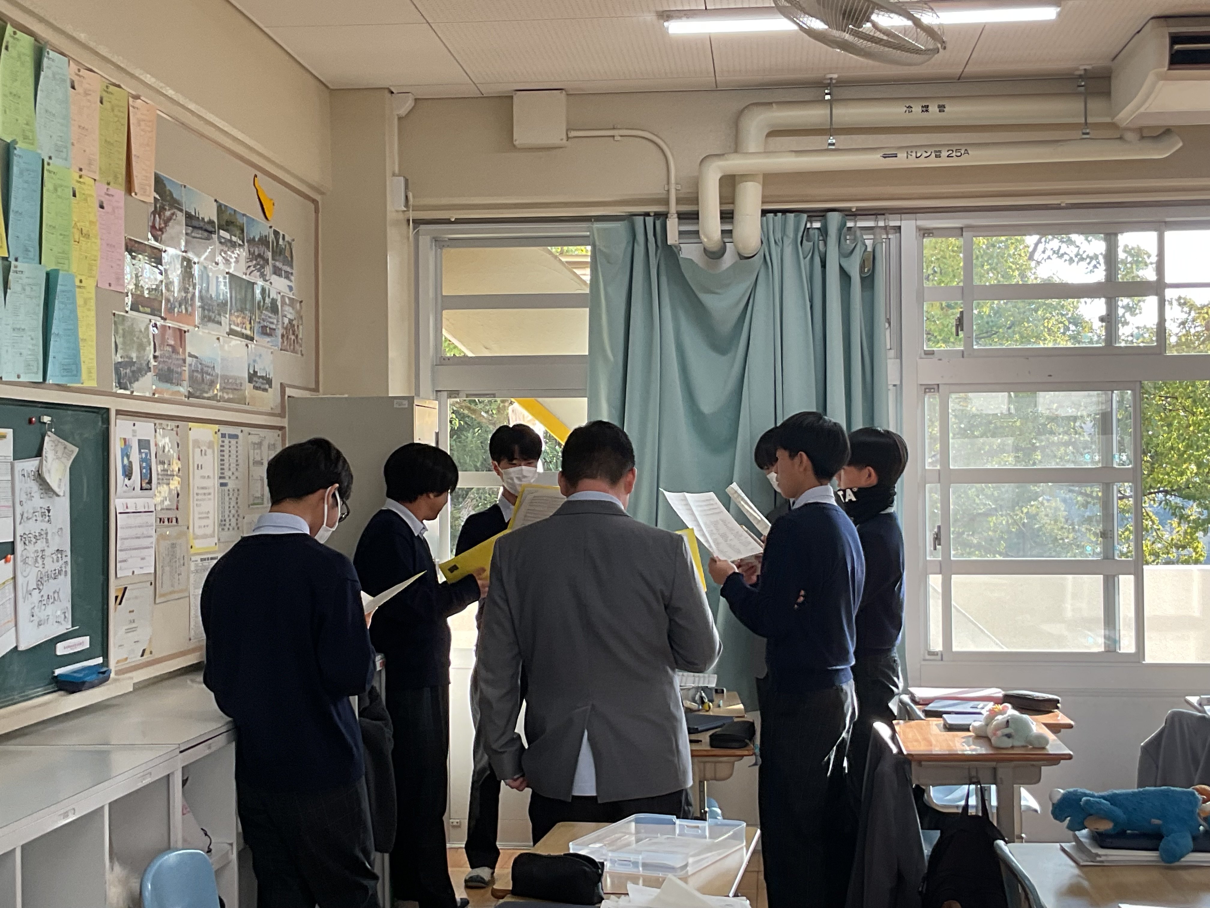 2学期当初に3年生全員が"理科×〇〇"をテーマに発表した個人探究について、代表14名が千里新田小学校6年生の4教室に分散し、出前プレゼンを実施しました。初の取組みです。来春本校に入学する6年生の皆さんに、中学校での学びの姿を知ってもらい、意識づけにつながれば、との思いからです。この3年生は中1から3年間続けて理科の切り口から探究活動を継続してきました。教科書の内容を覚えることだけでない、自由な発想を展開し、調べてまとめて伝える、そんな学びの楽しさを、発表者の姿から感じ取ってくれたものと思います。たくさんの質問も出してくれた6年生の皆さん、ありがとう!中3生も実力テスト前でしたが、しっかりと準備し直し頑張りました!中学校からも10名ほどの教員が応援に駆けつけ、雄姿を見届けました。いい取組になりました。