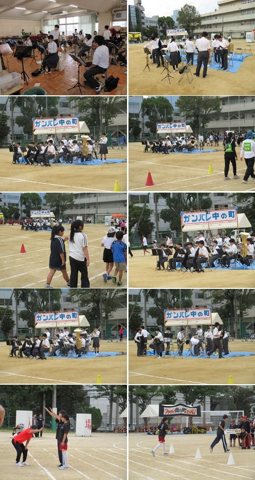 心配された台風23号の影響もなく、天気も曇り空程度でしのぎやすい朝です。今年度の市民体育祭は、コロナ禍以来吹奏楽部の演奏での選手入場です。トラックの中に位置取り、放送の合図と入場してくるタイミングで演奏を始めました。選手入場も終わり、開会式が終わると静かに撤収してくれました。朝早くからご苦労様でした。