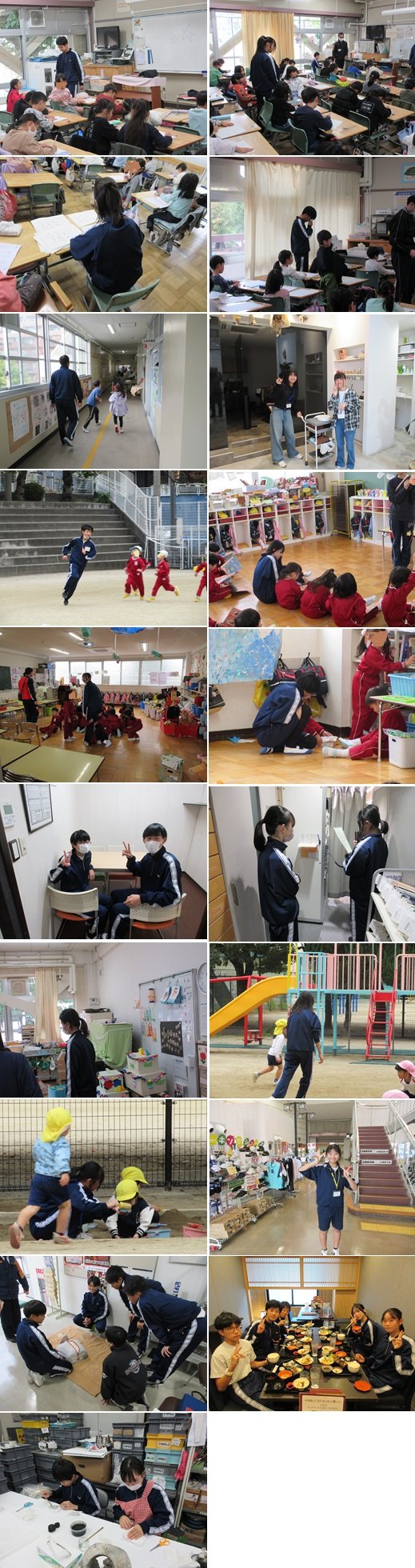 2年生の職業体験学習1日目です。初日という事もあり、緊張した面持ちで各事業所でお世話になっています。事業所の方からは、「先生に来てもらうと、生徒たちも緊張がほぐれ、笑顔が見られますね。」と言っていただき、生徒たちの頑張りが伺えました。今日は、小学校や認定保育園、幼稚園、介護施設、美容院、図書館、体育館、飲食店、消防署、博物館を廻りました。子どもたちと遊んでいる姿や、館内放送をさせていただいているところ、講習を受けている姿などが見られました。事業所の皆様、明日もよろしくお願いいたします。50期生の皆さん、明日も良い体験を積んで明後日の登校を待っています。
