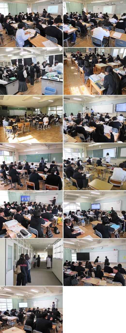 今日はオープンスクール(1日学校公開)です。多くの保護者の方に、お子様の日頃の学校生活の一部を見ていただきました。また、校区の小学校6年生の保護者にも案内を出し、4月の入学に向け中学校生活について見ていただきました。生徒たちも、普段と変わらない一日を過ごしていました。