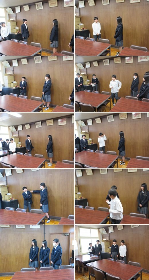 2年生の保健委員が昼休みに会議室に集まり、薬物乱用防止教室で薬物を勧められた時の断り方を寸劇で行うので、その練習をしていました。昨日の一斉委員会で原稿を渡されたところでしたが、1回目の練習にしてはセリフもある程度覚えていました。あと1,2回練習して本番です。もし、勧められてしまった時にどうしたらいいか、ロールプレイで皆さんに示してくださいね!
