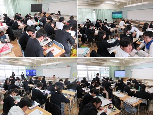 3年生の英語の授業を参観しました。内容も随分高度になってきています。中学校英語も大詰めです。今日のテーマは「後置修飾をマスターしよう」です。「そういえば聞いたことあるよな~」と思い出しながら、私も授業に参観ではなく参加していました。前時の復習では、作った分をペアで確認し合ったり、全員で復唱したりしていました。3年生のこの時期でも元気に声を出しています。また、先生が出したお題を今日のテーマに即して、例文を参考にしながら英作していきます。見ていて、「よく書けるなー」と感心してしまいました。49期生頑張っています!