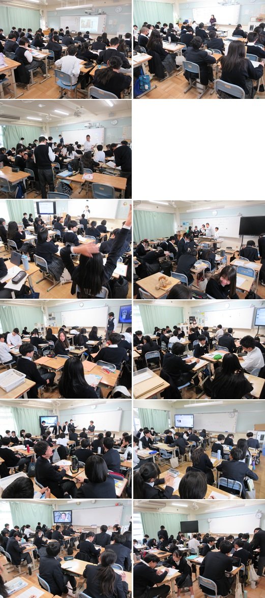 づき、それらを大切にすることの大切さについて考えていました。2年生は、ローテーション道徳です。いじめ予防授業や、模擬裁判等に取り組んでいました。3年生もローテーション道徳です。あるクラスは、肝硬変を患った母へ、ロードレーサーである子が肝臓を生体肝移植で提供し、その後オリンピックに出場を果たす「母と子のロードレース」の動画を見て、家族の愛ややり抜く意志の強さについて考えていました。