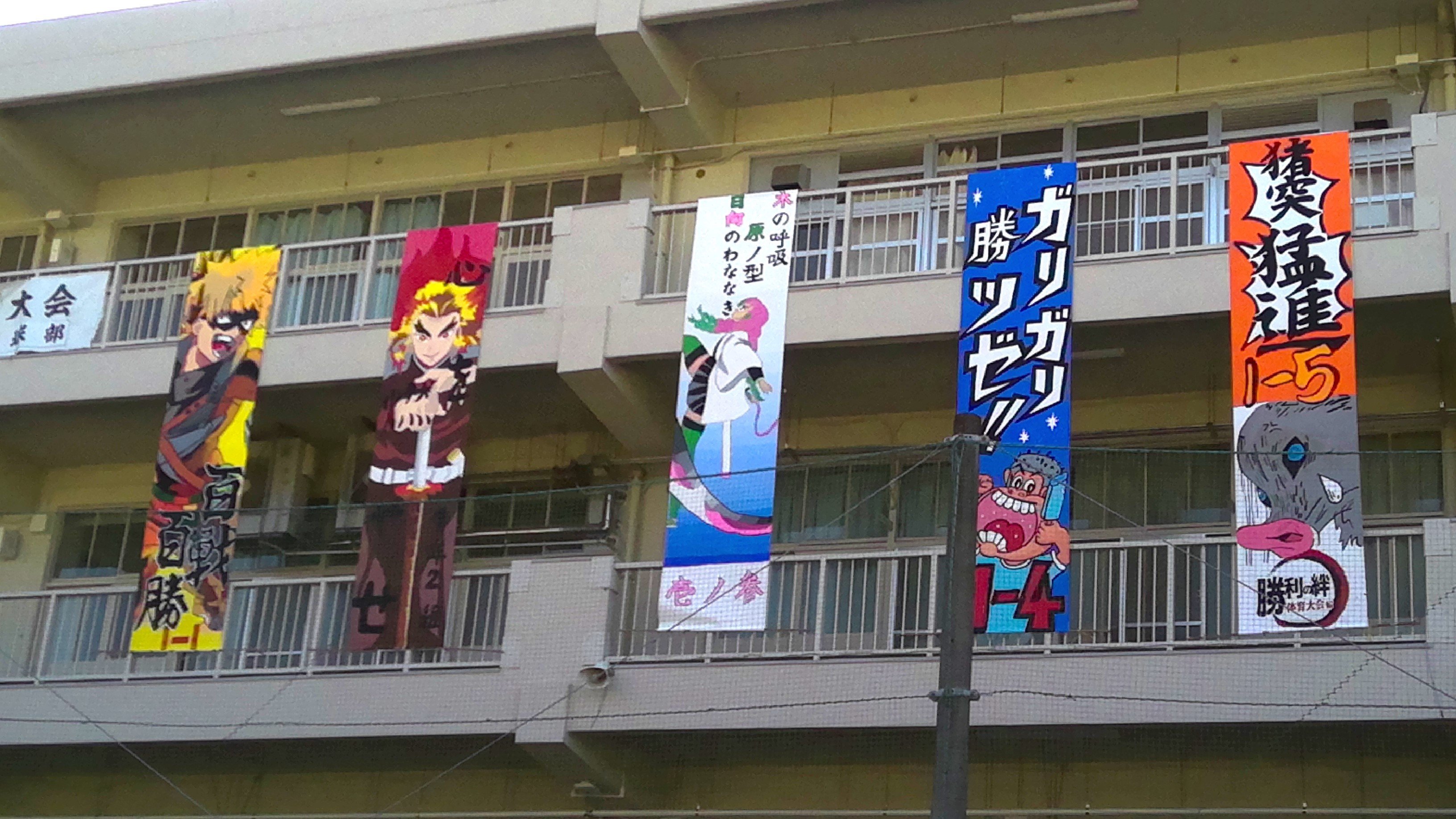今日、優勝・準優勝、垂れ幕の金賞・銀賞で勝ち負けが決まり、嬉しい気持ち悔しい気持ち、やり切った、または出し切れなかった、さまざまな思いがあると思いますが、どのクラスも、どの生徒も一人一人がよく頑張って、熱意をもって、山中体育大会を盛り上げていました。競技中の生徒を一生懸命応援しているやさしさ、「力出し切れなかった」と悔しがって仲間に言うと「そんなことない!みんな頑張った!」と返す姿、勝ったクラスや友人に「おめでとう!」といい、「ありがとう」と感謝する場面、精いっぱい走り切る姿などなど、私の挨拶で話した「山中のレガシー」次の時代に引き継いでいきたいモノが物としては見えないけど、みんなの心に残ったのではないでしょうか。体育委員長の宣誓にあったように、みんなにとって「宇宙一の体育大会」になりましたか。よかった点、反省点全部含めて、振り返ってみてくださいね。