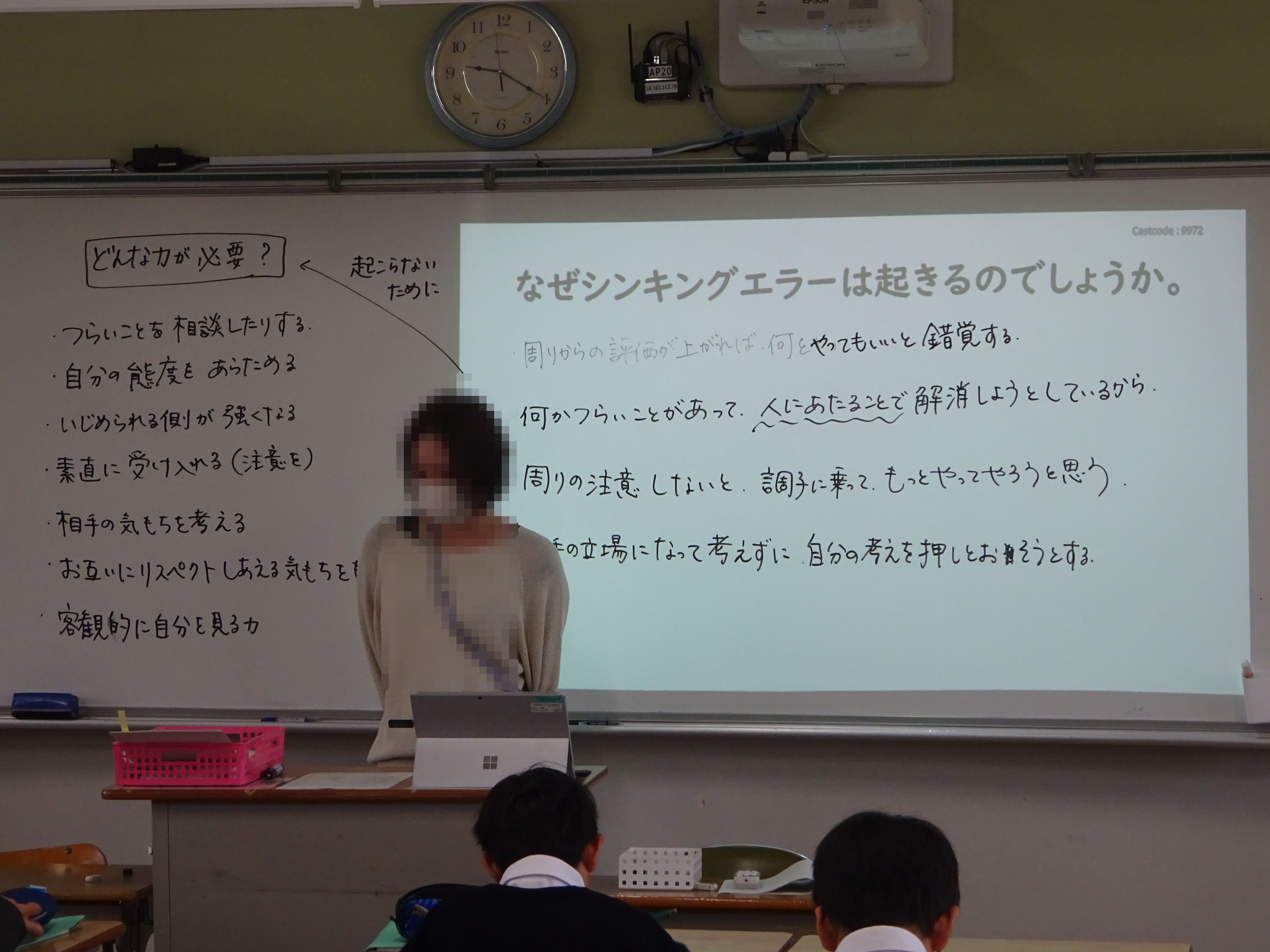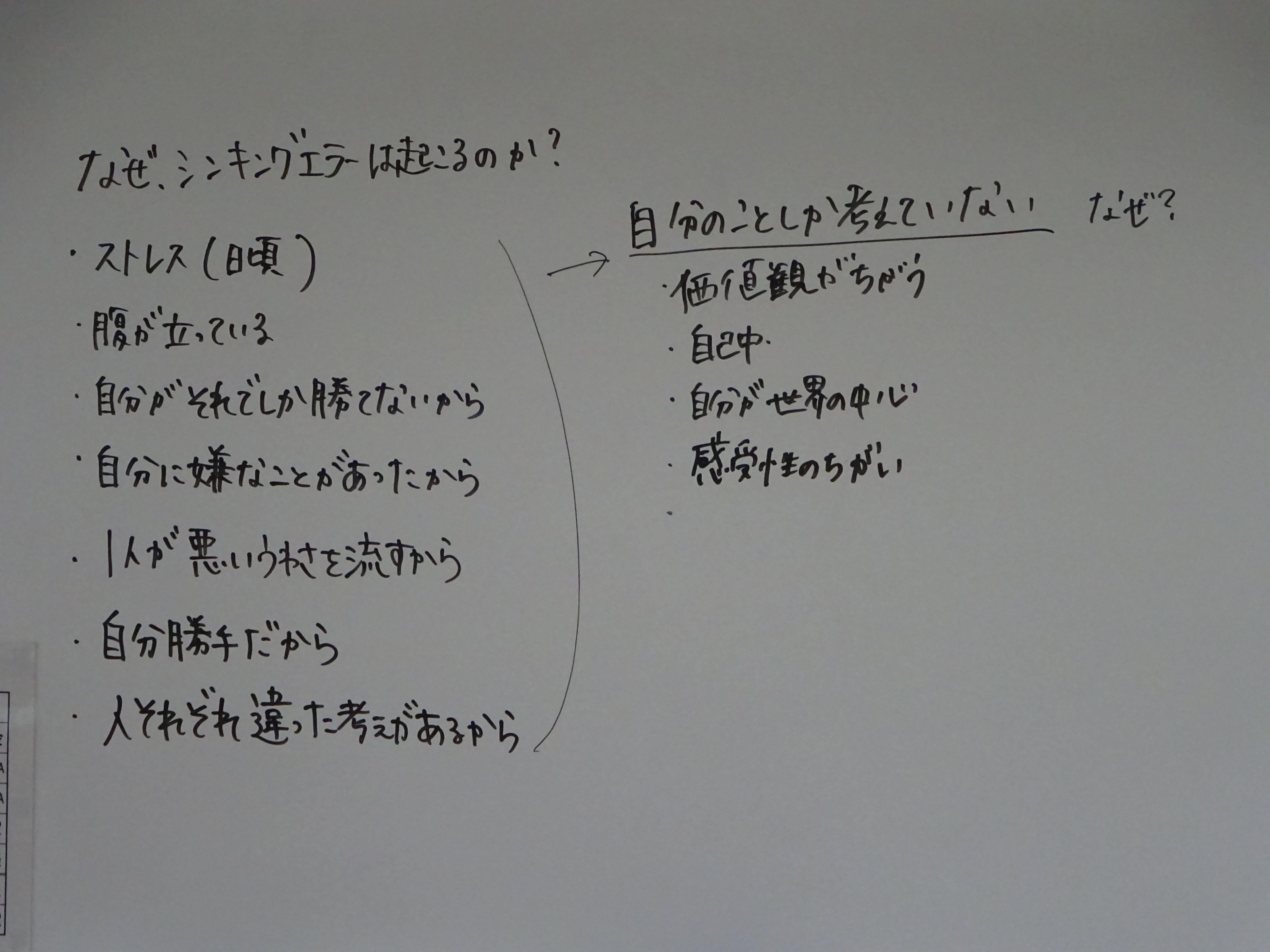 先週の体育大会の振り返りということで、安心ルールを確認の上、「自分自身のトリセツ」に取り組んでいましたね。過去の出来事を振り返って俯瞰してみることは、自分を知るうえで大切なことですね。それから自分以外の人から見た自分を知ることもいいですね。第3者にしかわからない自分、自分にしかわからない第3者こともあります。自分にも第3者にもわからない(まだ誰にも気づかれていない)自分の良さもあります。