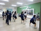 昨日に引き続き、放課後の部活動見学です。今日は下足室でダンス部がまず、「こんにちは!!」と元気に挨拶してくれて、「ちょっと見せてね!」と。