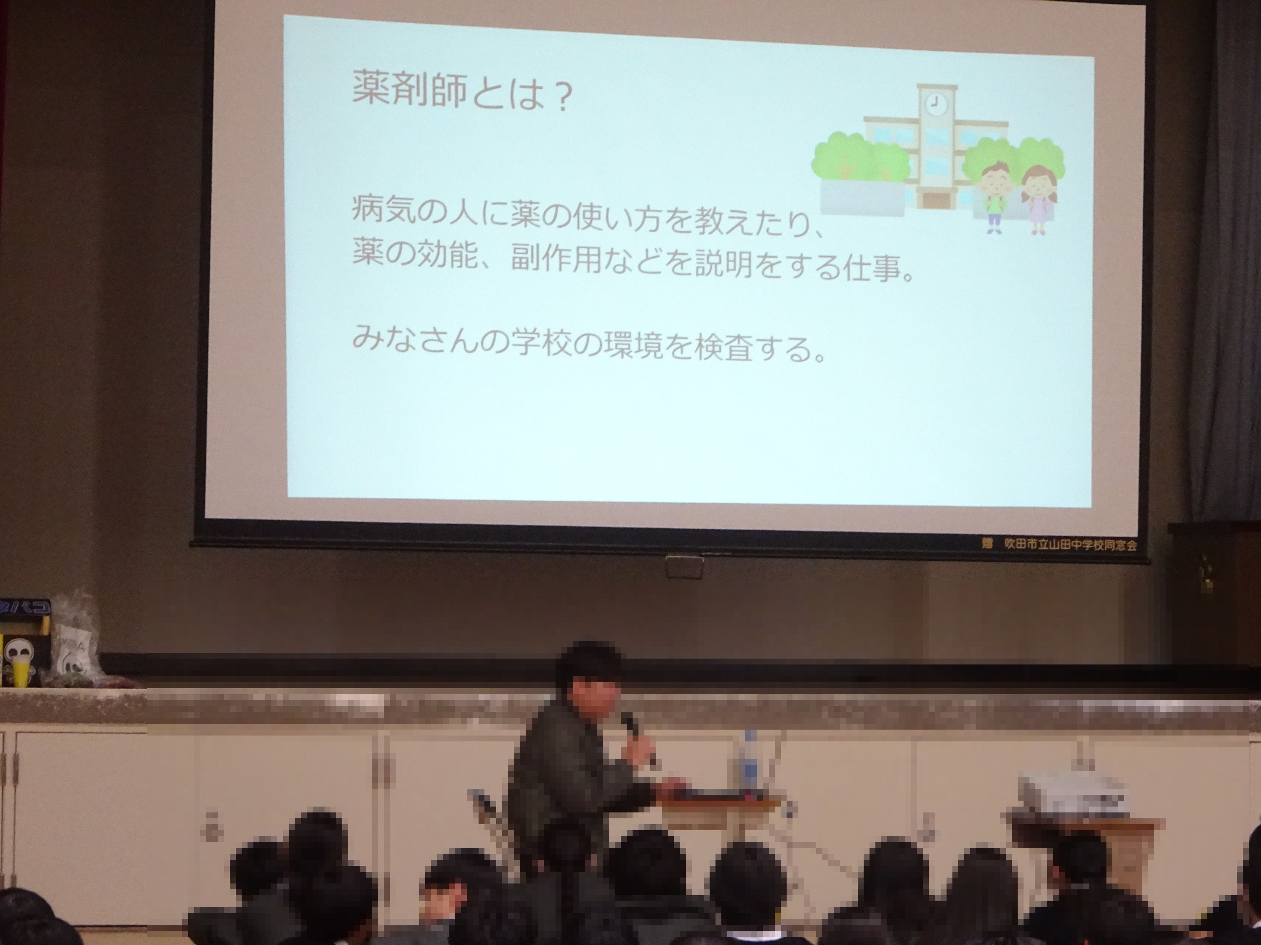3年生の学年集会は、さまざまな先生が前に立って、山中3年生にメッセージを送っていました。卒業まで3学期を残すのみ。卒業するときに悔いが残らないようにとの思いでしょう。冬休みは進路に向けて頑張ってくださいね。