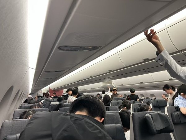 今から飛行機を降りて解散式を行います。解散まではもうしばらくかかります。