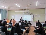 本日の授業の様子です。先生の発問に生徒たちがおもしろい視点で答えているのに感心しました。なるほど!と感じたところは、生徒たちから「おぉー」と声があがります。これがまさに「学び」であり、「わかった!」という瞬間なんですよね。校長の私も中学生のころを思い出しながら一緒に授業を聴いていました。