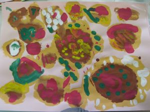 先日の絵具を使って描いた絵は、こんな感じで出来上がりました。