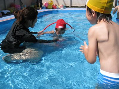 昨日、今日、とってもいいお天気で、まさにプール日和。