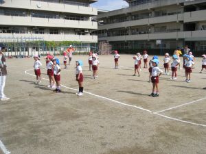 『小学校の運動場はめっちゃ広いなぁ?』と子ども達。