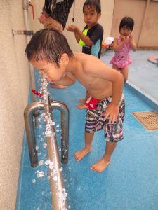 今日は、そのままプールです。 目を洗うのも、上手になりました。